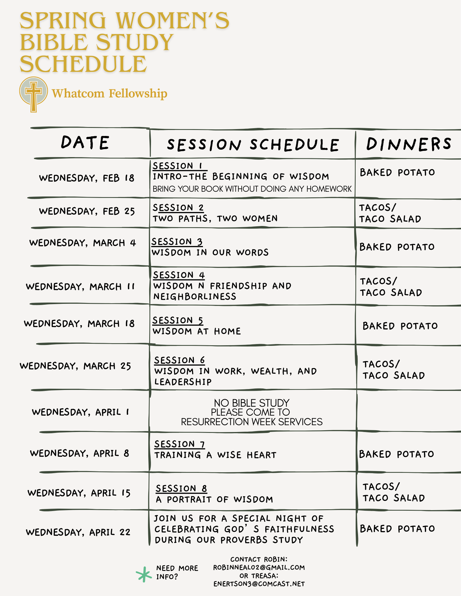 We will meet on Wednesday Nights starting February 18 at 6...